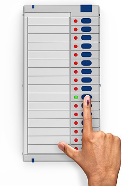 डेमो मतदानासाठी हाताचा पंजा निशाणी समोरील निळे बटण दाबावे